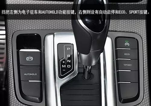 擋把左側為電子駐車和AUTOHOLD功能按鍵,右側則設有自動啟停和ECO、SPORT按鍵。