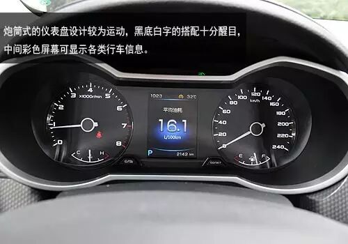 炮筒式的儀表盤設計較為運動,黑底白字的搭配十分醒目,中間彩色屏幕可顯示各類行車信息。