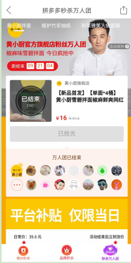 據速途網了解,“黃小廚”是一個生活方式品牌,同時也是明星IP。圍繞該品牌,發展出一系列的內容產品、社群產品、實物產品及其他商業形態。通過對拼多多平臺的了解,“黃小廚”將椒麻味雪碧拌面的全網首發渠道放在了拼多多。