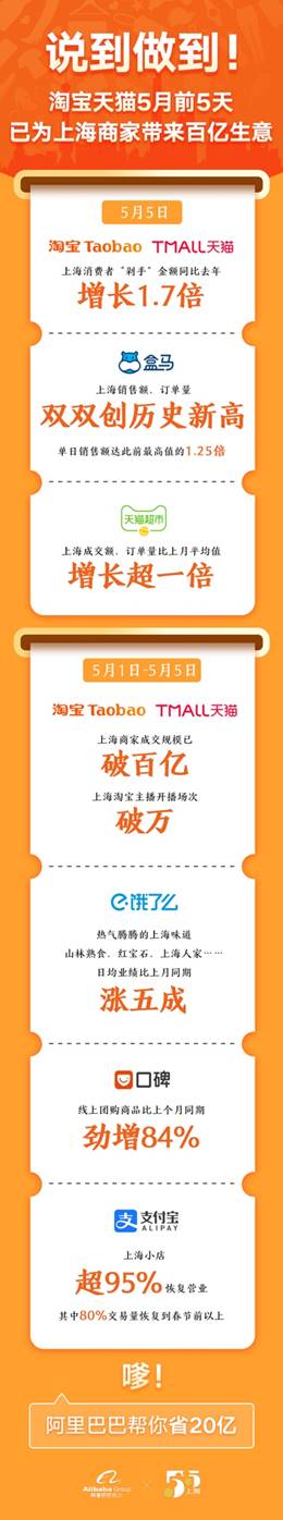 4月23日,阿里巴巴宣布全力支持上海“五五購(gòu)物節(jié)”,在5月、6月繼續(xù)推出大力度促消費(fèi)實(shí)招,發(fā)揮線上線下融合的新零售獨(dú)特優(yōu)勢(shì),打響新消費(fèi)的春雷。事實(shí)證明,阿里巴巴言出必行。