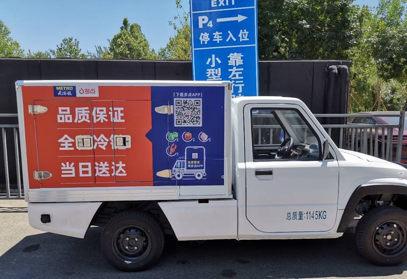 據多點Dmall介紹,麥德龍此次采用的冷鏈車為新能源物流車,車體分為冷藏區和冷凍區,雙溫控制系統實現分區控溫,冷鏈物流配送車堪稱“移動的大冰箱”,箱體溫度全程控制在麥德龍規定范圍之內,可連續制冷長達12小時,保證全天候末端配送需求,全程鎖鮮不斷鏈。無需保溫箱、冰磚、干冰,配送手段更為環保安全,經濟效益更高。