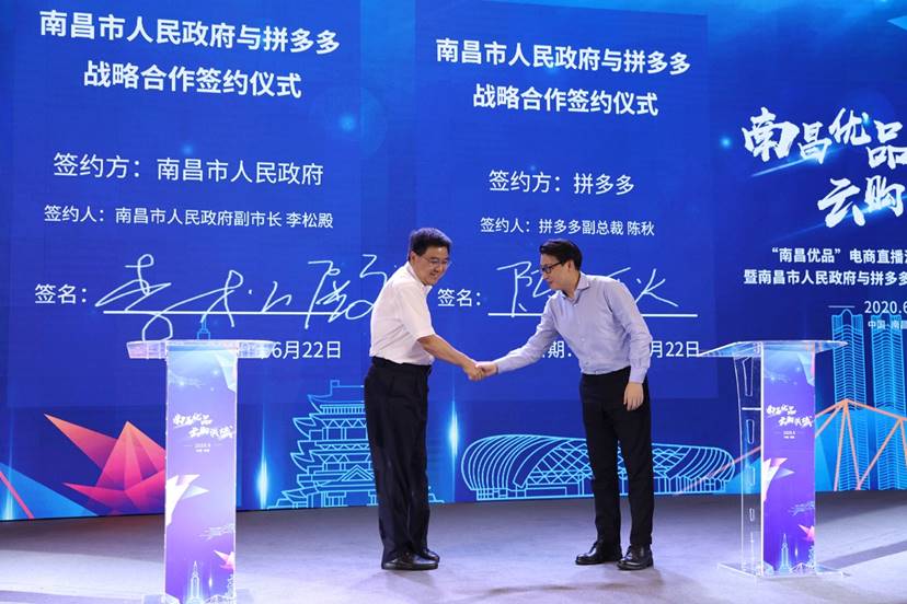速途網(wǎng)6月22日消息(報道:李楠)今日,南昌市人民政府與新電商平臺拼多多簽訂戰(zhàn)略框架協(xié)議,共同啟動“南昌優(yōu)品”電商直播消費節(jié)、“南昌優(yōu)品館”線上大型展銷專場等系列活動。