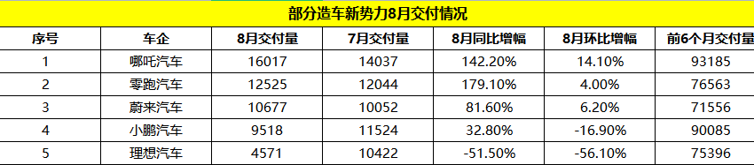 值得注意的是,今年1-8月,哪吒汽車交付93185臺,同比增長176%;截至2022年8月,哪吒汽車品牌自成立以來累計交付量189162臺。2022年累計交付量超越小鵬汽車,升至第一名,是位名副其實的實力型選手。